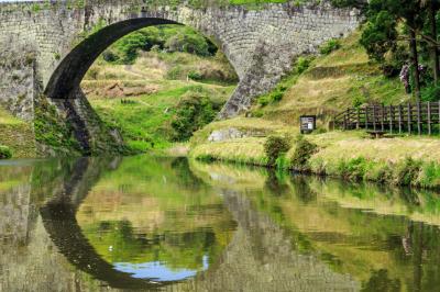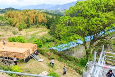 散策路は、古い橋や新緑、コバルトブルーの川などがあり、天空の城ラピュタのような風景が広がています。