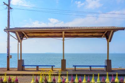 駅の改札をいったん出ると、海芝公園で少しゆったりと景色を見ることができますが