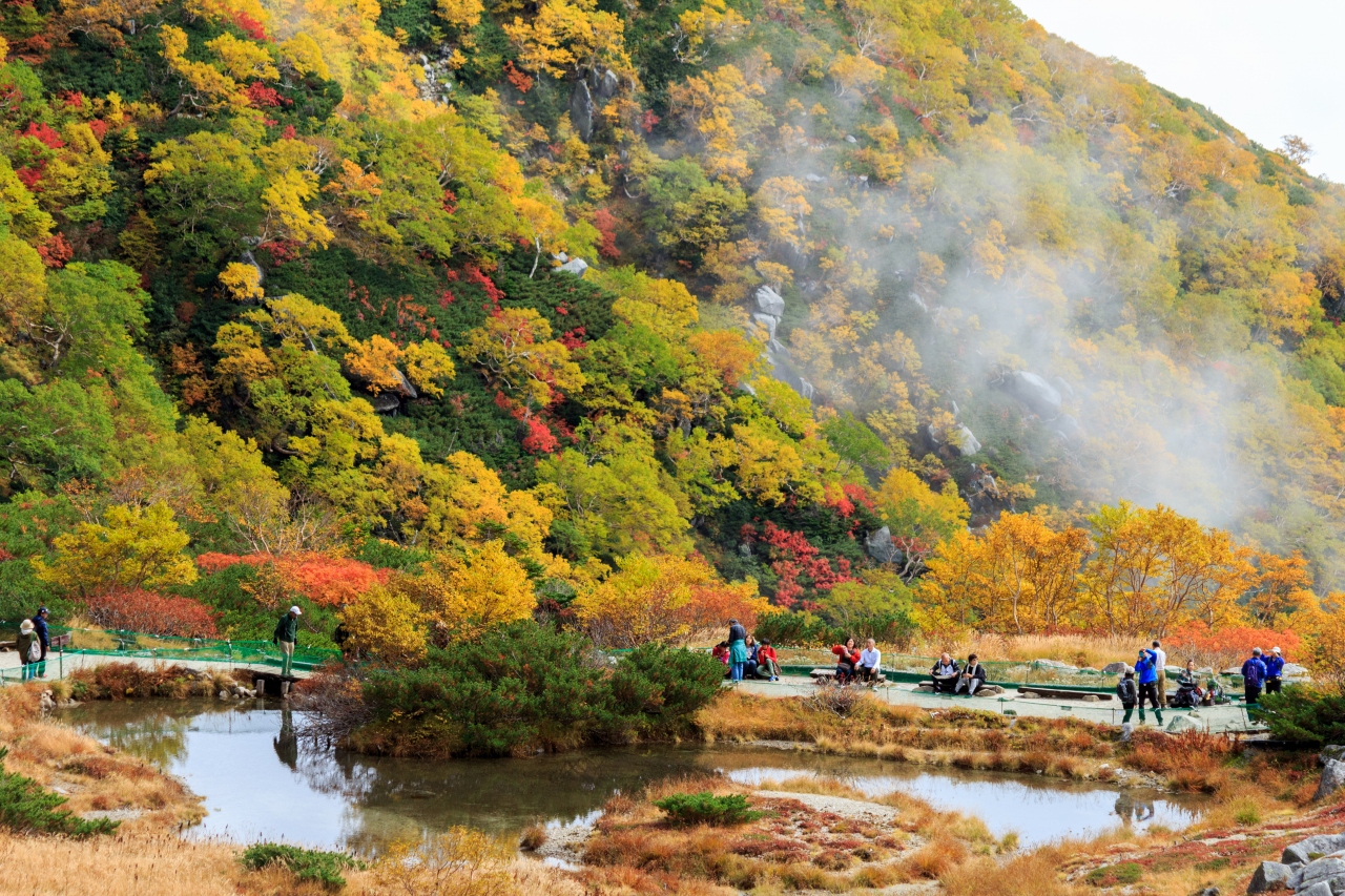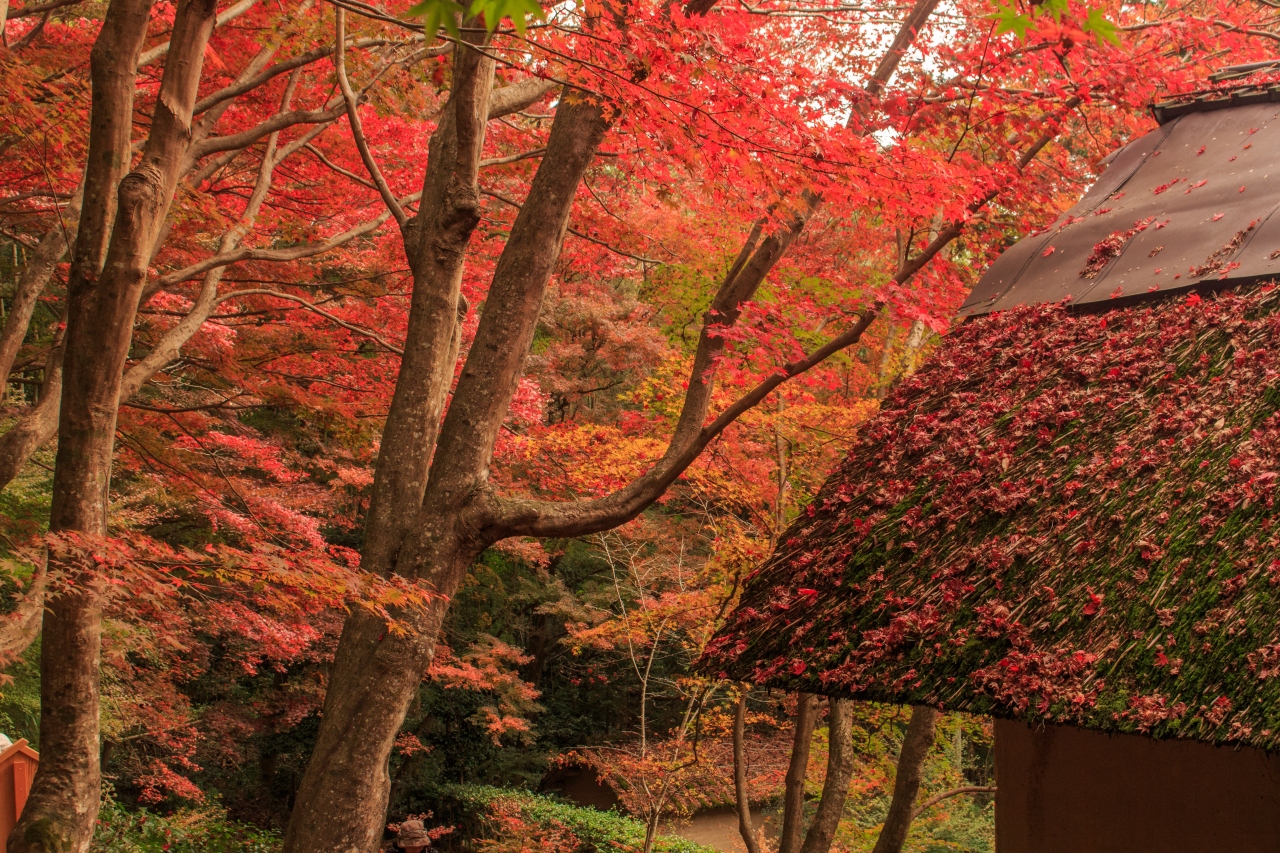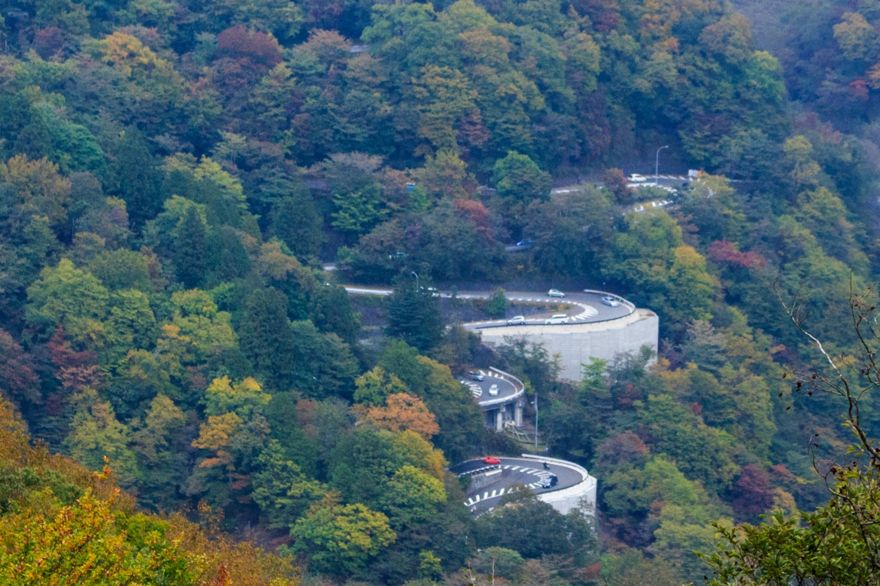 紅葉時は、一段と緑の山肌にくっきり映える黄葉が楽しめます。- 旅行時期