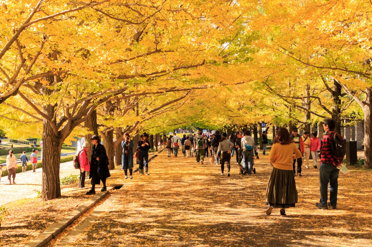 11月上旬からは立川口から続くイチョウ並木が特にお勧めです。