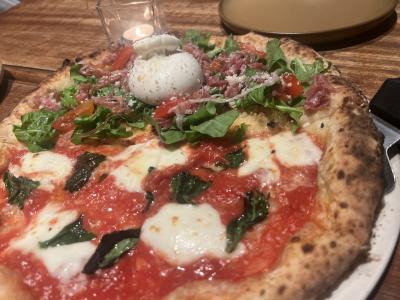 私たちはピザ1枚、ハーフ&ハーフで2種類選びました。ブッラータのは有名なので、もちろんそれもオーダー。