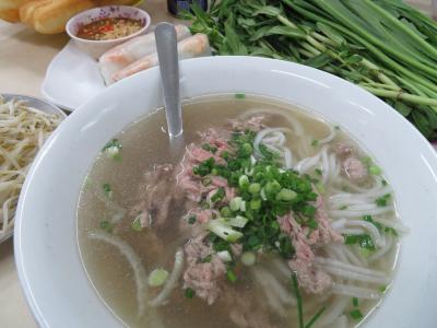 人気なだけあって、フォーは美味しかったです!一緒に大量の揚げパンが出てきます。食べ方がよく分からず、、、周りを見渡してもなかなか食べている人がいなかったのですが、スープに浸している人を発見。真似して食べてみました。スープの味が染み込んで美味しかったですが、一個で充分ですね。