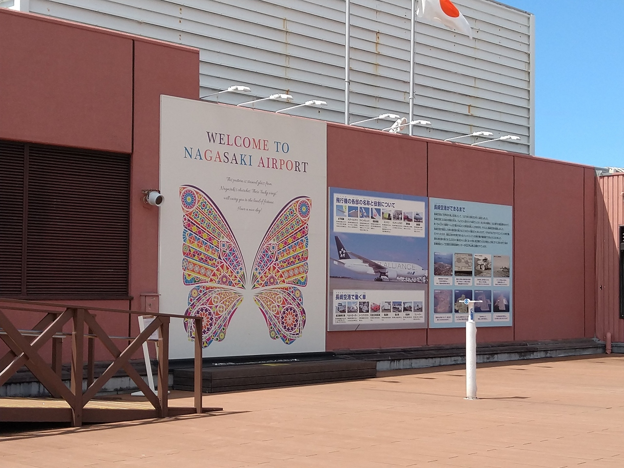 長崎空港はそれほど大きな空港ではありませんが、空港の屋上には、飛行機が見える展望スペースが設置されているだけでなく、インスタ映えしそうな羽のペイントや鐘(どちらも自撮りできるようにスマホ台がありました)があったり遊具があったりしました。