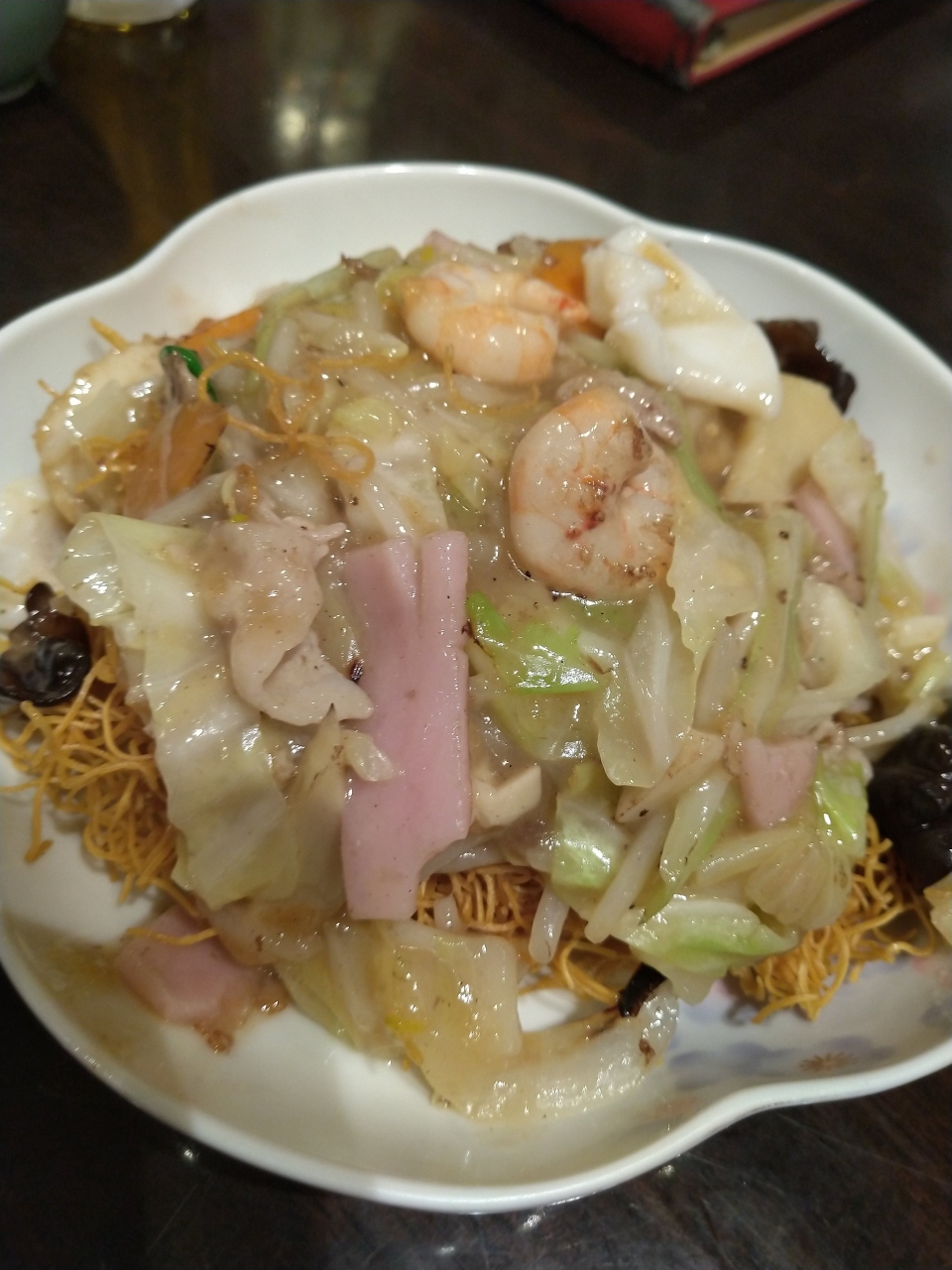 長崎新地中華街にあるレストランです。お店の手前はお土産屋さんになっていて、奥にレストランスペースがありました。お昼前だったので待ち時間なく入れました。ちゃんぽんと皿うどんをチョイス。一人一品注文をお願いしますとのことでした。