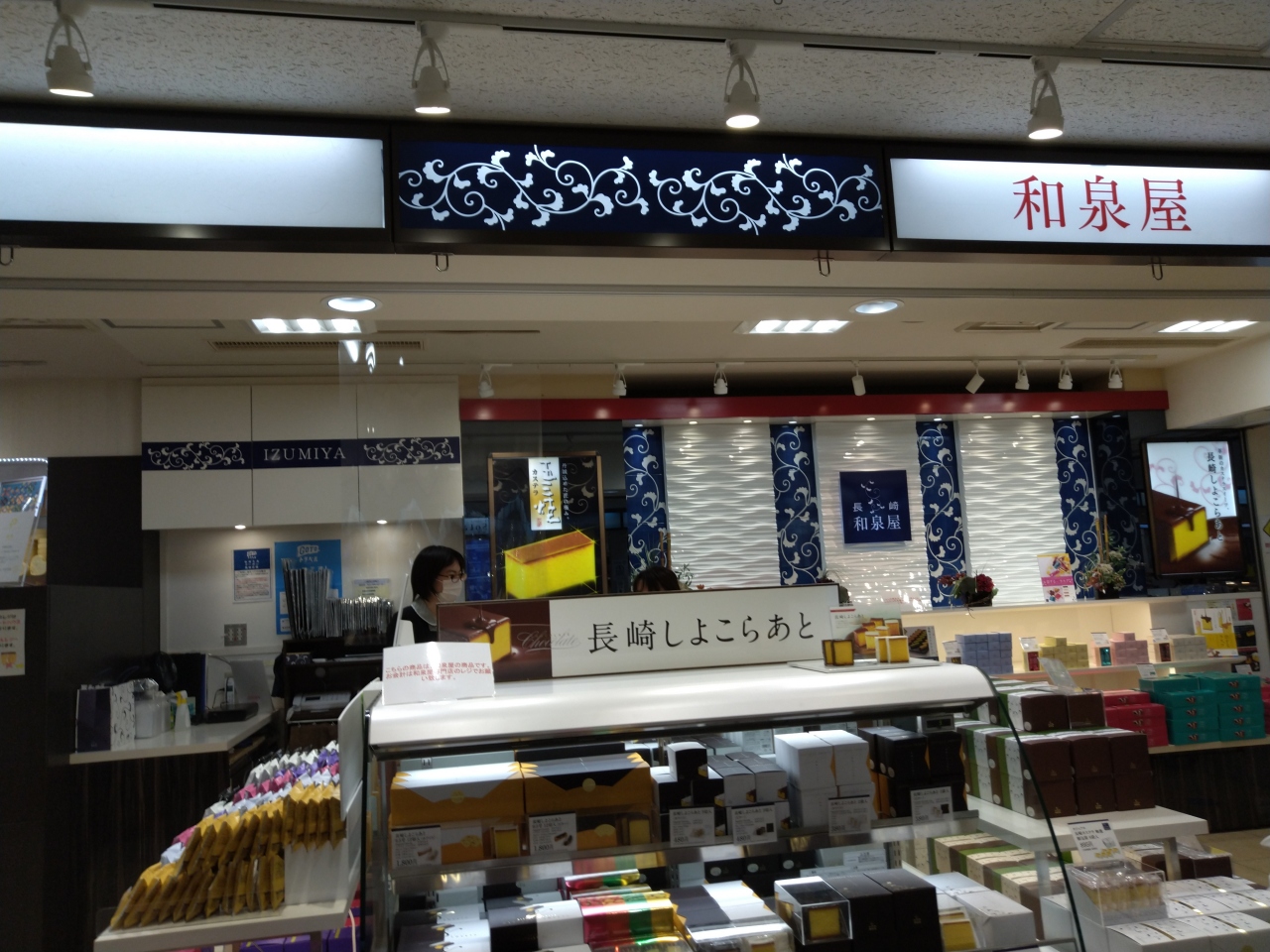 長崎空港の建物内にあるお土産屋さんです。長崎といえばカステラですが、普通のカステラ以外にもチョコレートでコーティングされたものやラスクなど変わり種もありました。飛行機の待ち時間に買い物できて便利でした。