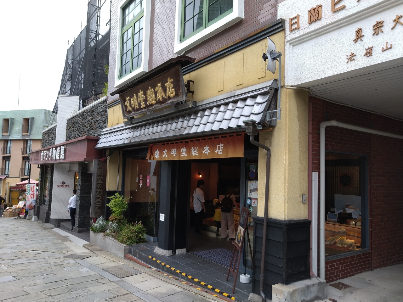 大浦天主堂の前の坂道沿いにありました。長崎といえばカステラですが、こちらもそのカステラの専門店でした。プレーンのカステラはもちろんですが、こちらは変わり種のチーズカステラも人気なのだそう。小さいサイズのカステラもあってお土産にちょうどよかったです。