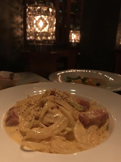 店内は照明が暗めで落ち着いた大人っぽい雰囲気でした。バーカウンターの他、テーブル席も何席かありました。料理はイタリアンがメインで前菜やパスタ、ピザの他、お肉のメニューもあり、おいしかったのでお酒だけではなく料理も楽しめると思います。