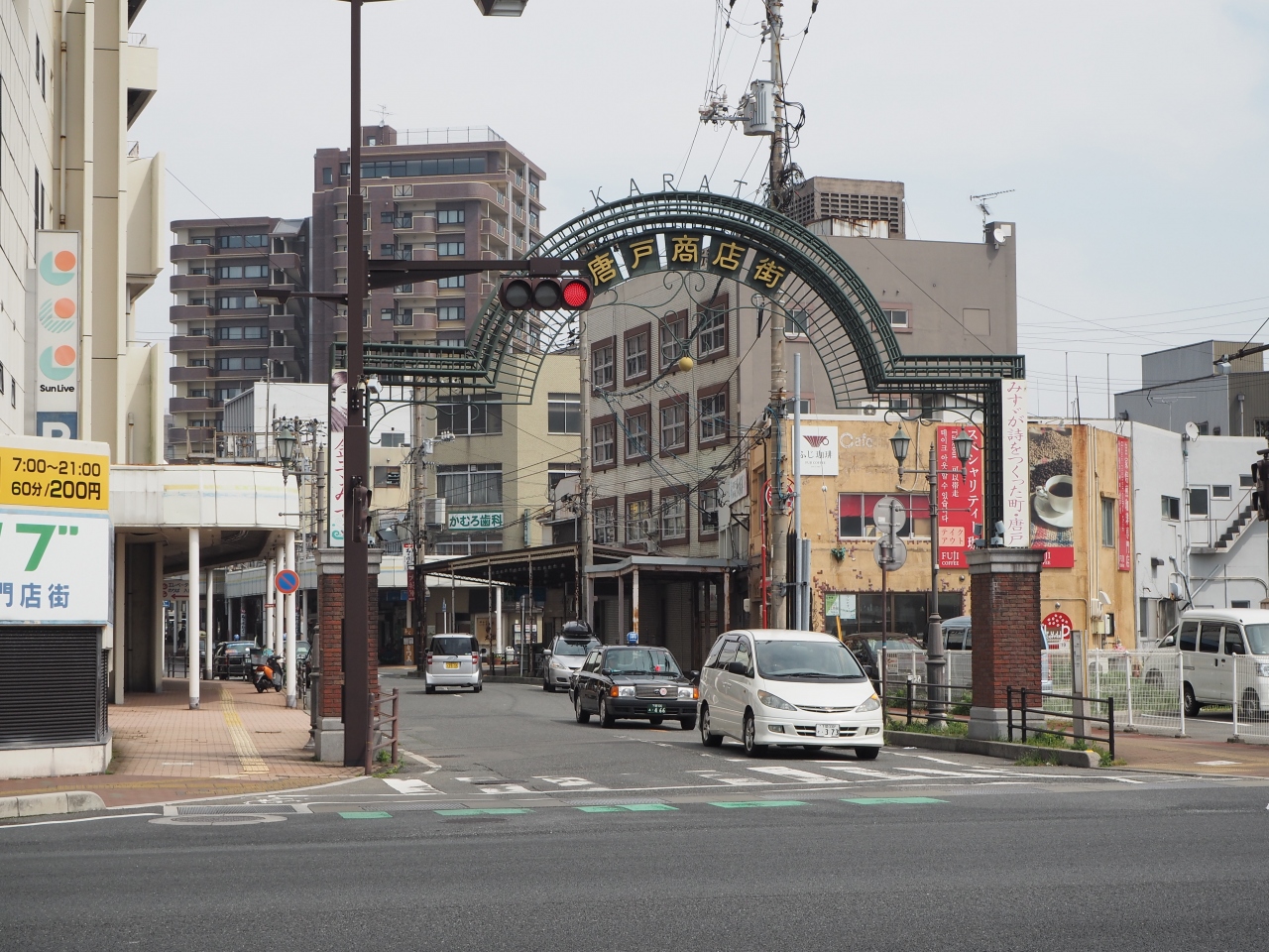 カモンワーフのすぐ近く、亀山八幡宮の脇の通りの商店街です。唐戸商店街の通りにホテルがあり、そこに宿泊しましたが、周囲にはシャッターがしまっているお店もあってそれほど活気がある雰囲気ではなく、近くの唐戸市場の活気とは対照的でした。