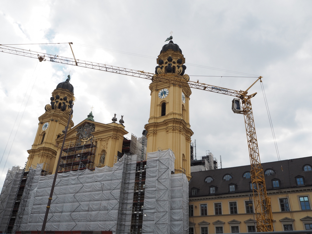 レジデンツやホーフガルテンの近く、大通りを挟んだ反対側にありました。この教会は外壁がクリーム色とカラフルな色合いできれいでした。ただ訪れた時には修繕工事中のようで教会が半分くらい工事ネットで囲われてしまっていて残念でした。