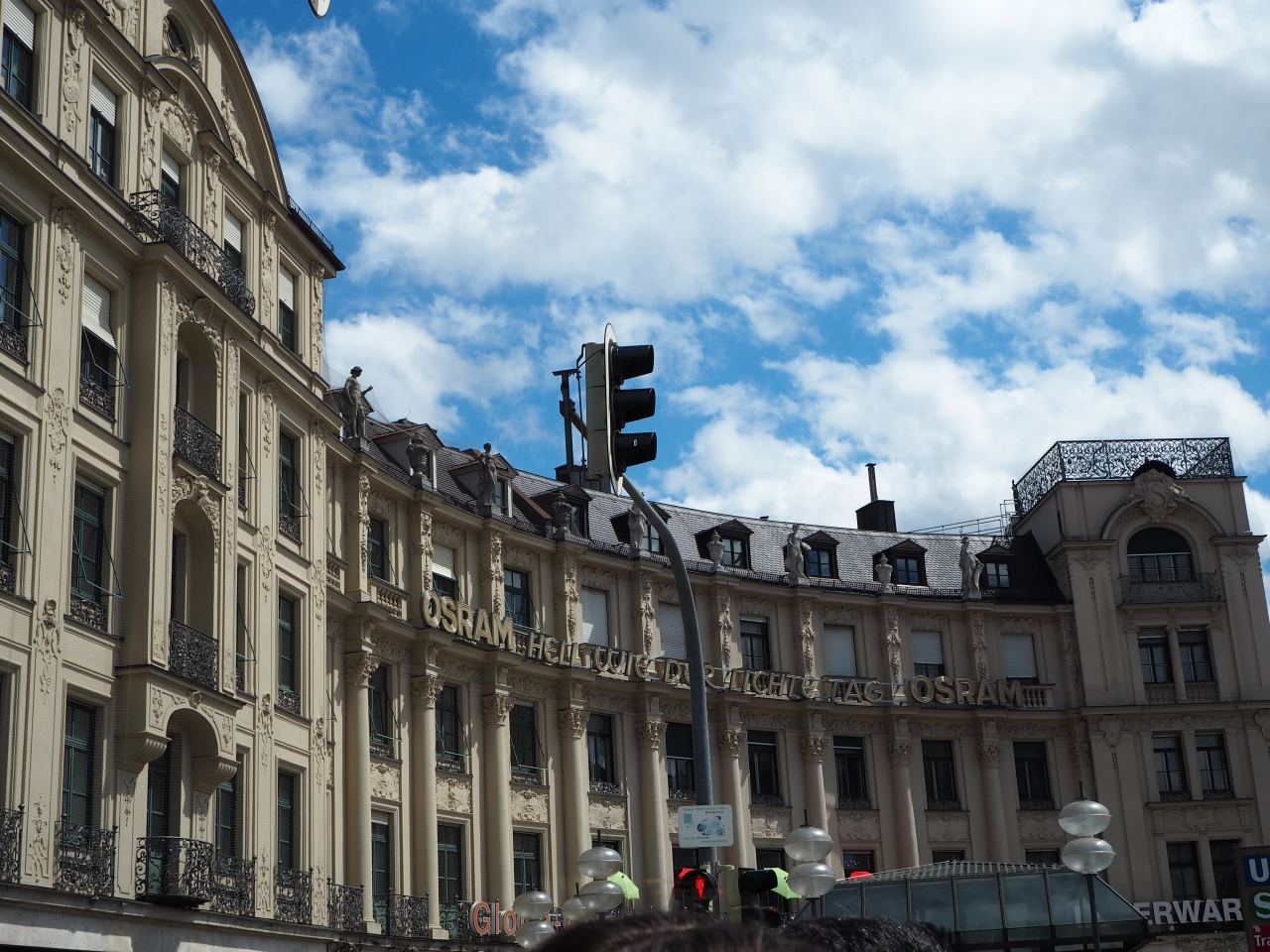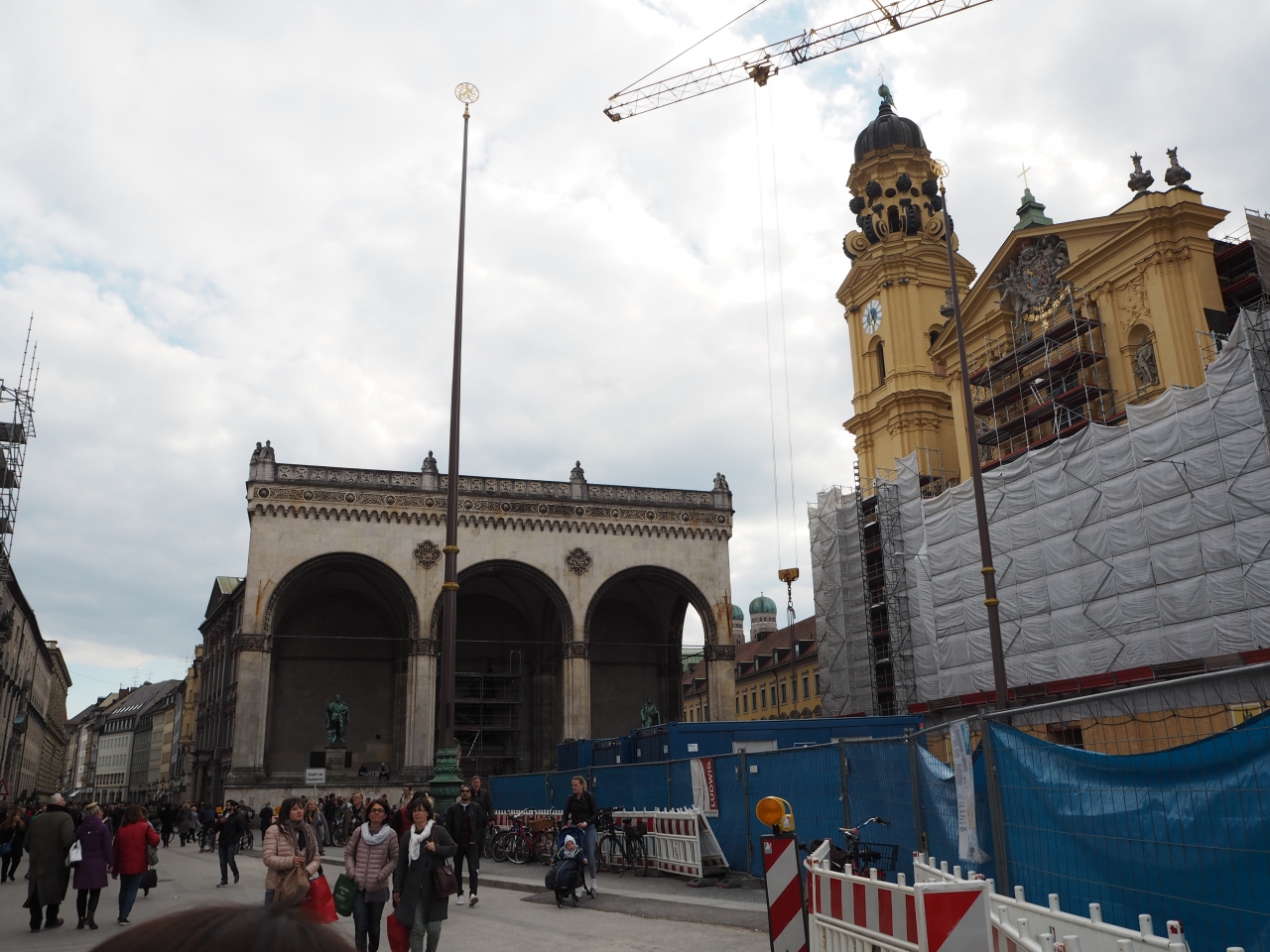 ミュンヘン中央駅から近い場所にある広場で、歩行者天国のノイハウザー通りの入口に位置しています。車やトラムの交通量が多く、横断歩道を何個も渡らなければならない大きな広場です。ノイハウザー通り入口付近は車が入ってこない広場になっていて活気がありました。