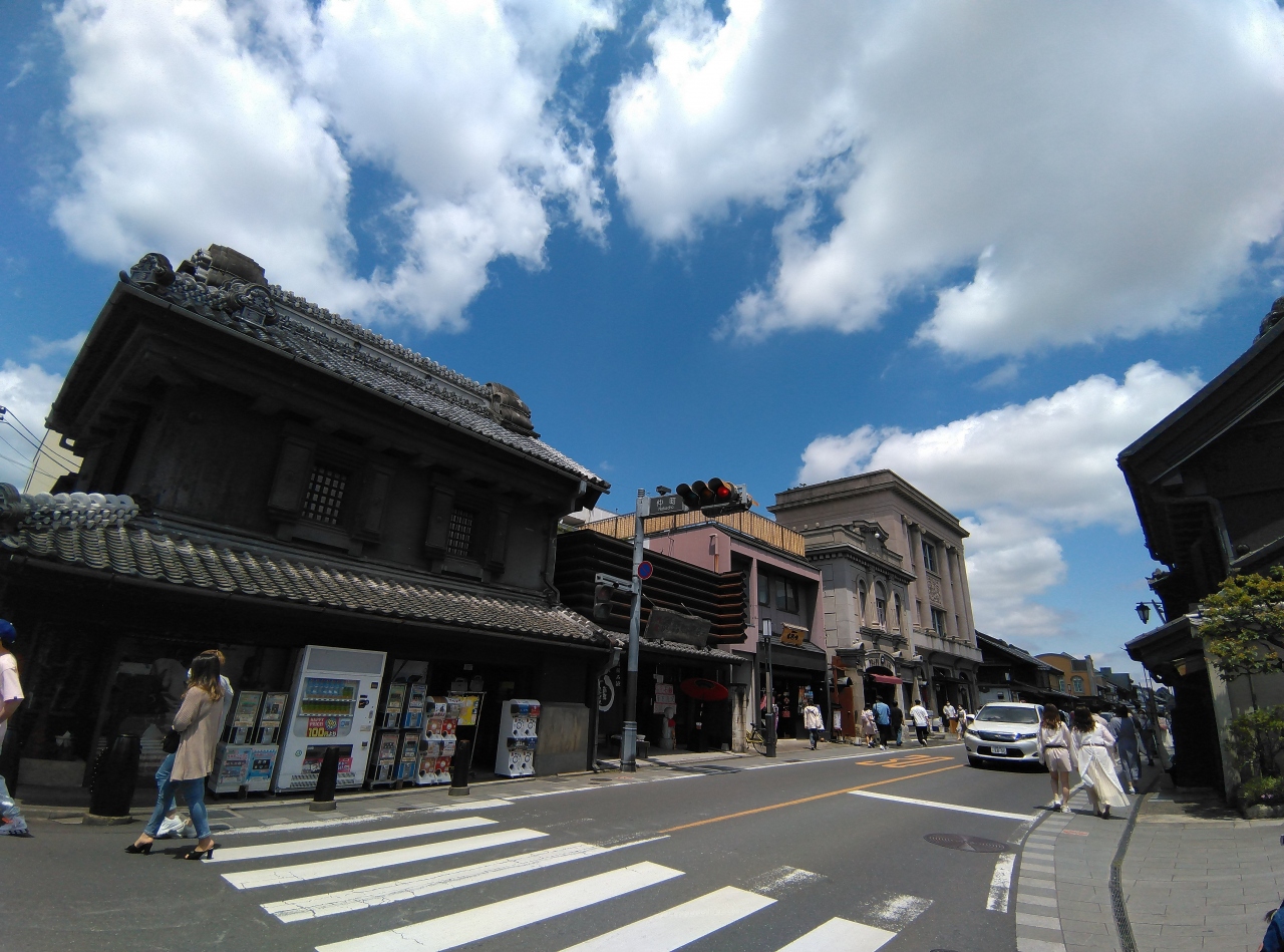 道の両側には蔵造りの歴史ある建物が並んでいて、そこだけタイムスリップしたような風景でした。これらの建物にはテイクアウトにぴったりなソフトクリームや和菓子などを販売するお店などが入っていてゆっくり街散策がぴったりの通りでした。