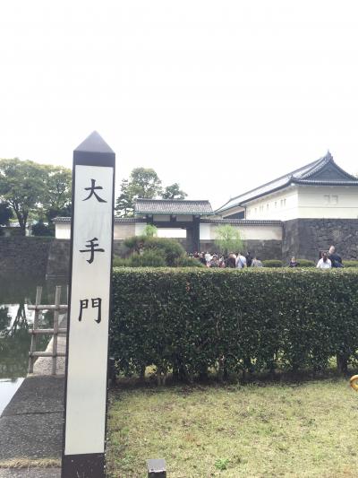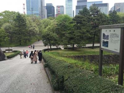 皇居東御苑は無料で見学できるようになっていますが、入り口のところで受付が必要になっていました。昔は江戸城のあった本丸跡地などを見学できるようになっていて、本丸跡地付近は現在は芝生に広がる広場になっていました。