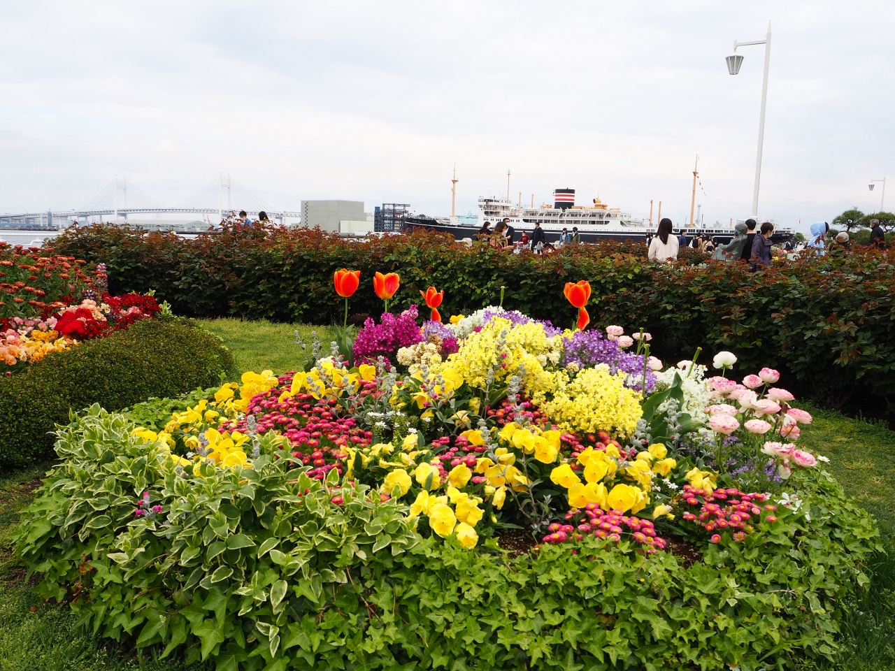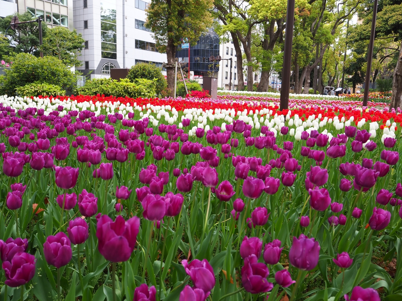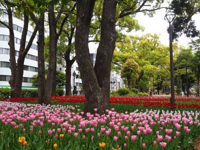 4月中旬にチューリップが見ごろと聞いていってみました。品種によってはすでに見ごろが終わっていて花びらが落ちているものもありましたが、きれいでカラフルなチューリップがたくさん見られてよかったです。関内駅から歩けてアクセスしやすいのでよかったです。