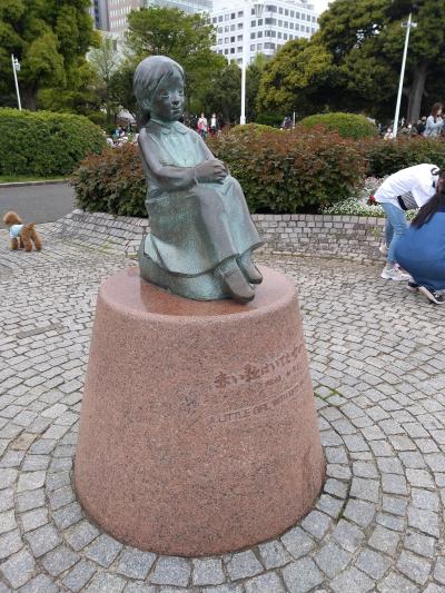 山下公園の花壇に囲まれた円形の広場の中にある銅像です。それほど大きな銅像ではありません。体育ずわりした女の子が海の方を向いていました。こちらの銅像は「赤い靴」という童謡の歌詞をイメージしてつくられたものなのだそうです。