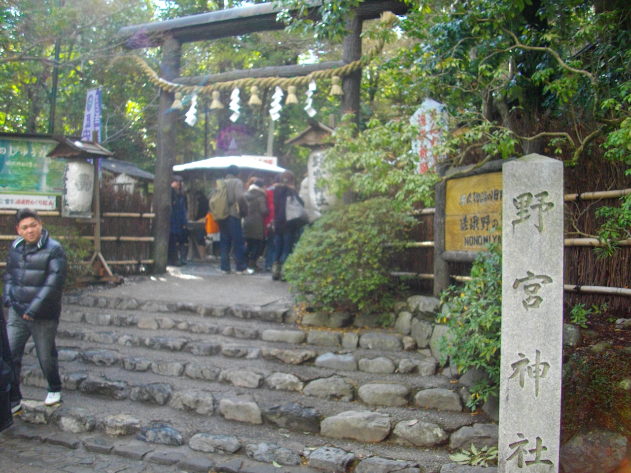 野宮神社の入り口にたっている鳥居です。黒木鳥居とは木の樹皮をはがさずにそのまま使用している鳥居のことなのだそうで、最古の鳥居の形式なのだそうです。それほど大きな神社ではありませんが、人気の竹林の中にあるため、観光客が多かったです。