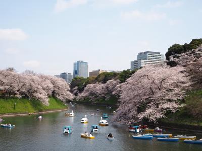 桜の時期に訪れたので、平日でしたが、それでもボート乗り場には行列ができていました。今回はボートには乗船しませんでしたが、ボート乗り場の建物の屋上部分が展望台になっていて、ここからはお濠と桜の素晴らしい景色が楽しめました。