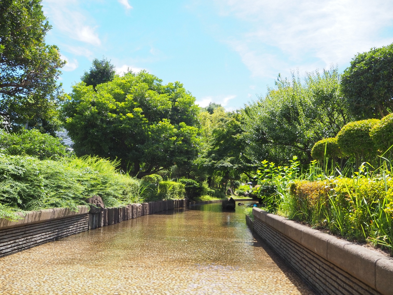 広い芝生広場のある公園です、最寄り駅は京王井の頭線の浜田山駅になります。今回は自転車で行きましたが、管理事務所前に駐輪できるスペースがありました。基本は芝生広場ですが、管理事務所近くに少しだけ滑り台などの遊具がありました。