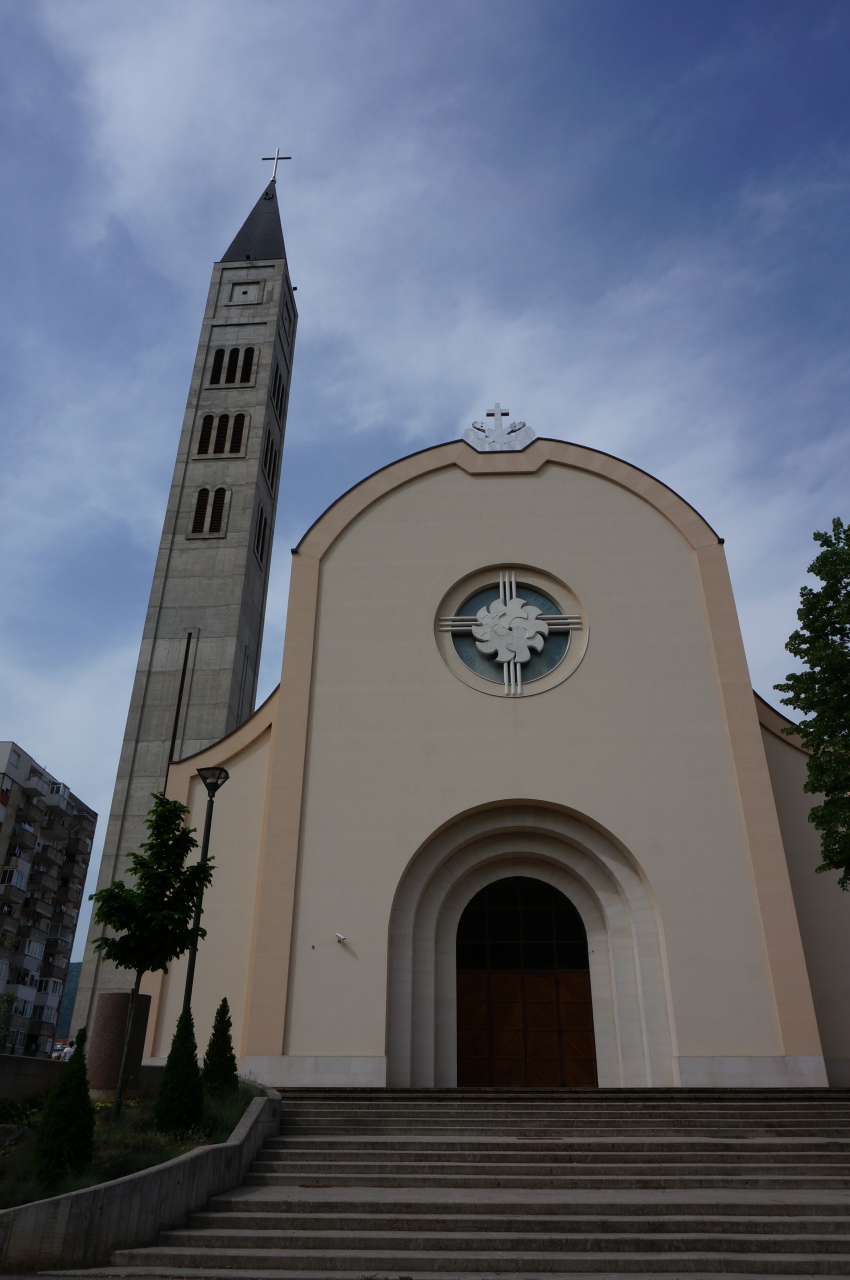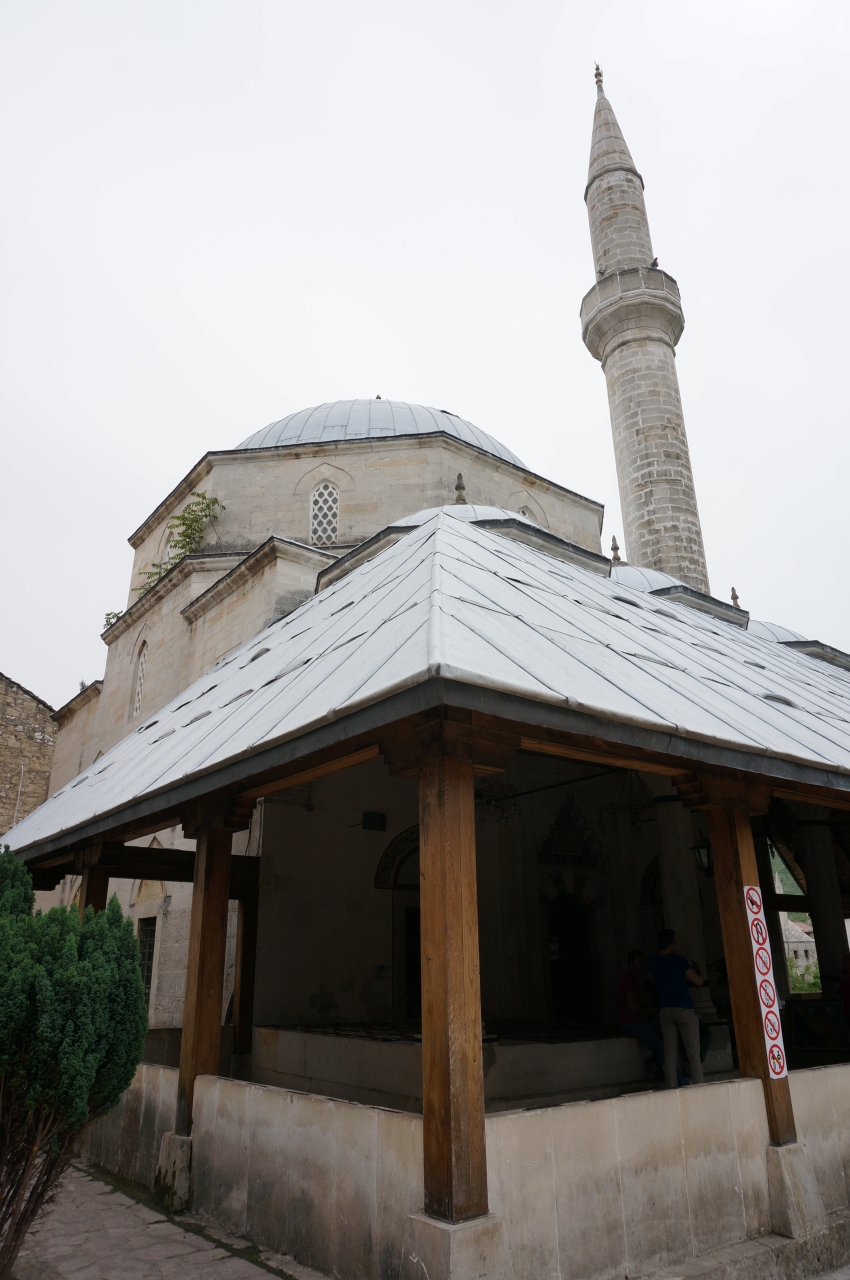 モスタル旧市街地にあるイスラム教のモスクです。入場は有料になっていましたが、観光客でも内部を見学することができました。こちらのモスクは、中庭からスターリモスト橋が真正面に見えてとてもよい記念撮影スポットになっていました。