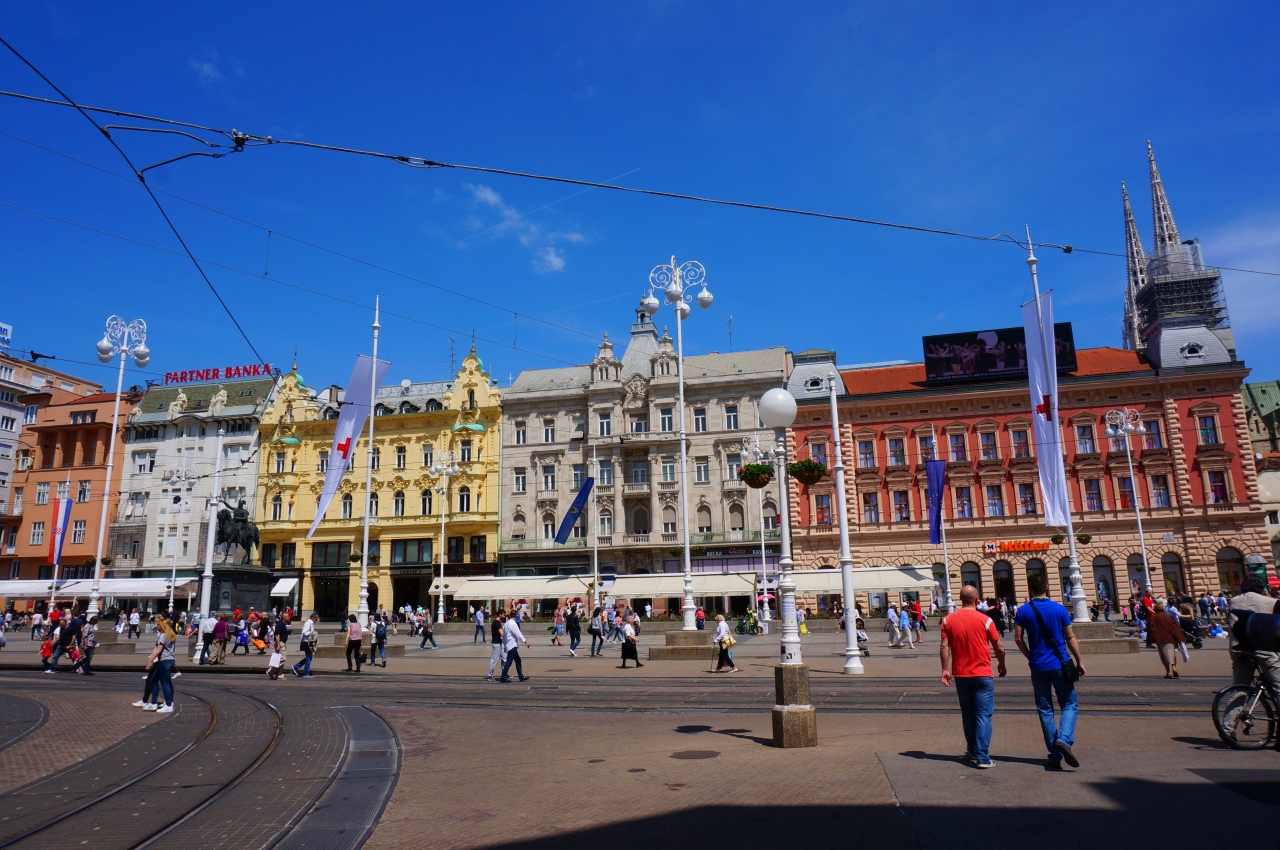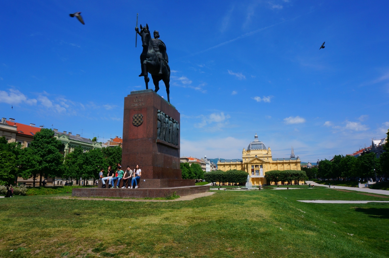 ザグレブ中央駅の駅前に広がる美しい広場です。広場の中央には、広場の名前にもなっているクロアチアの初代国王であるトミスラフの銅像がたっていました。また、広場に奥には美しいクリーム色の宮殿のような建物が建っていて絵になる風景でした。
