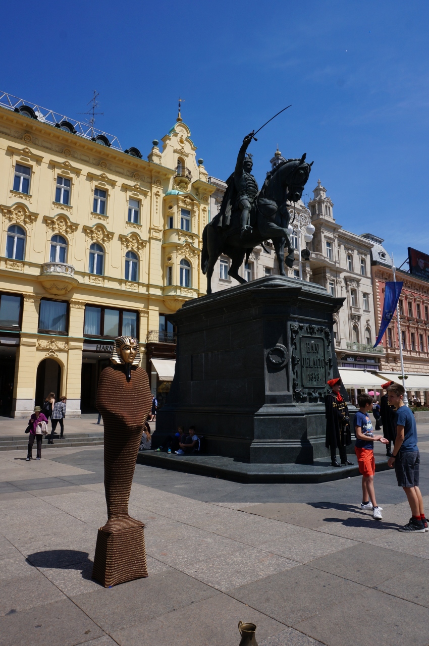 ザグレブの町のメイン広場であるイェラチッチ広場にたっている銅像です。イェラチッチ総督はクロアチアの独立に貢献した人なのだそうです。この広場は衛兵交代式のルートになっていて、この銅像の前にもしばらく衛兵がいて記念撮影できました。