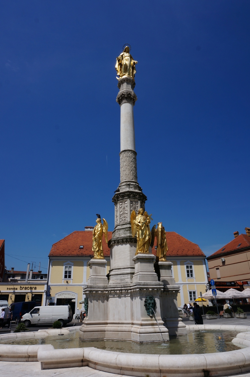 ザグレブ大聖堂の前にたっているモニュメントです。モニュメントには金色のマリア像が設置されていました。この大聖堂前の広場は衛兵交代式のルートになっていて、衛兵交代式後にはこのモニュメントの前にもしばらく衛兵がいて記念撮影できました。