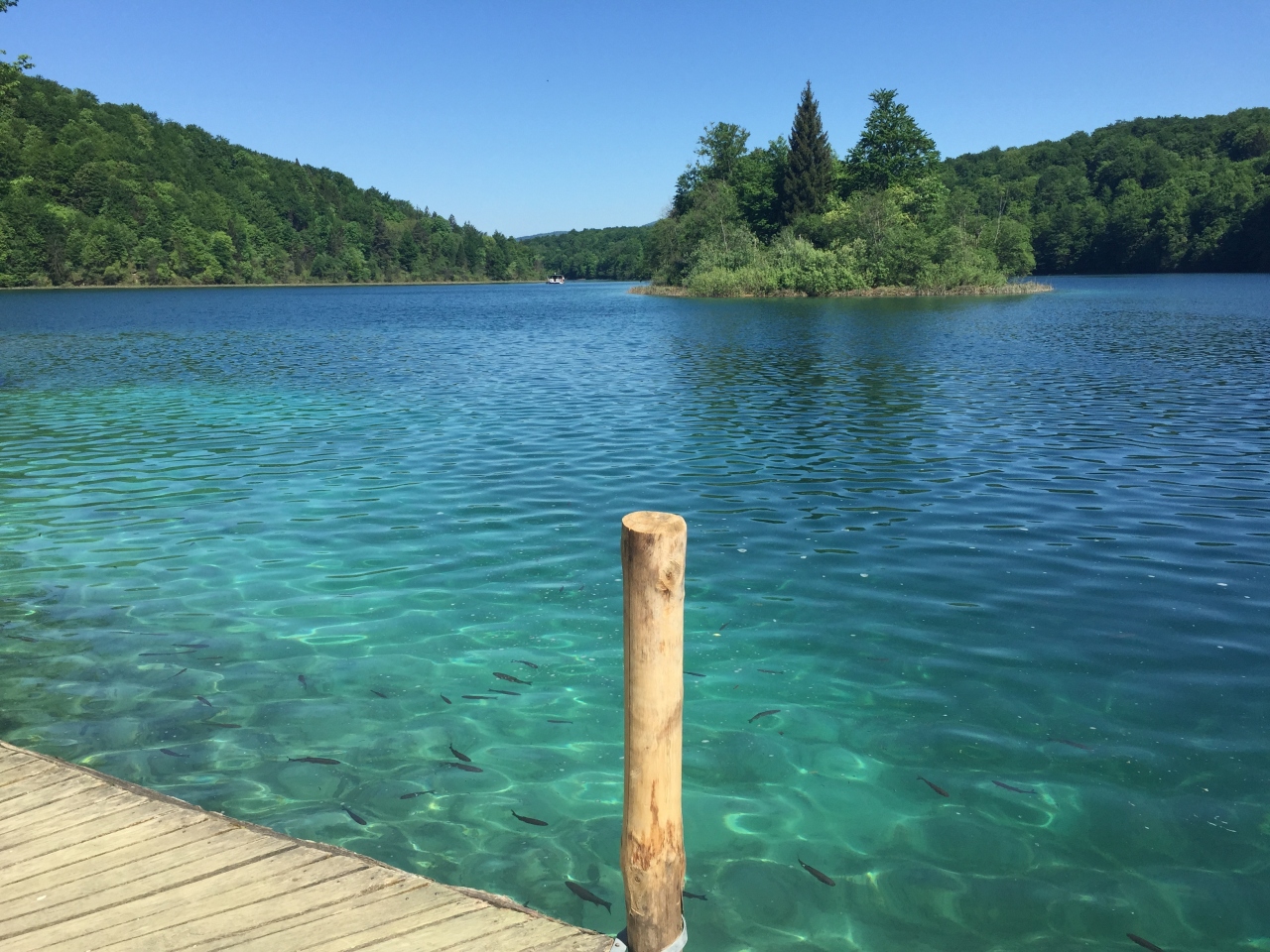 プリトヴィッツェ湖群国立公園内にある湖です。エントランス2から入場したので、下湖畔に向けてまずはこのコジャク湖を遊覧船で移動しました。とても天気が良かったので。コジャク湖の水の青さも際立っていて美しかったです。