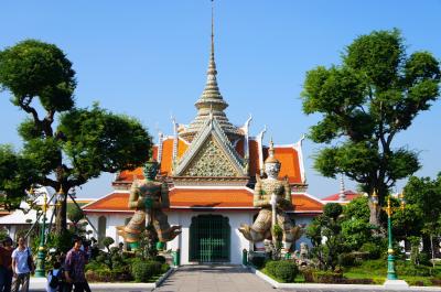 バンコクにある有名な三大寺院のひとつであるワット・アルンの敷地内にあります。ワット・アルンへは渡し船でチャオプラヤ川を渡って訪れましたが、渡し船乗り場の近くにこの2体のヤクシャ像が立っている門がありました。
