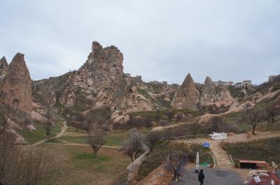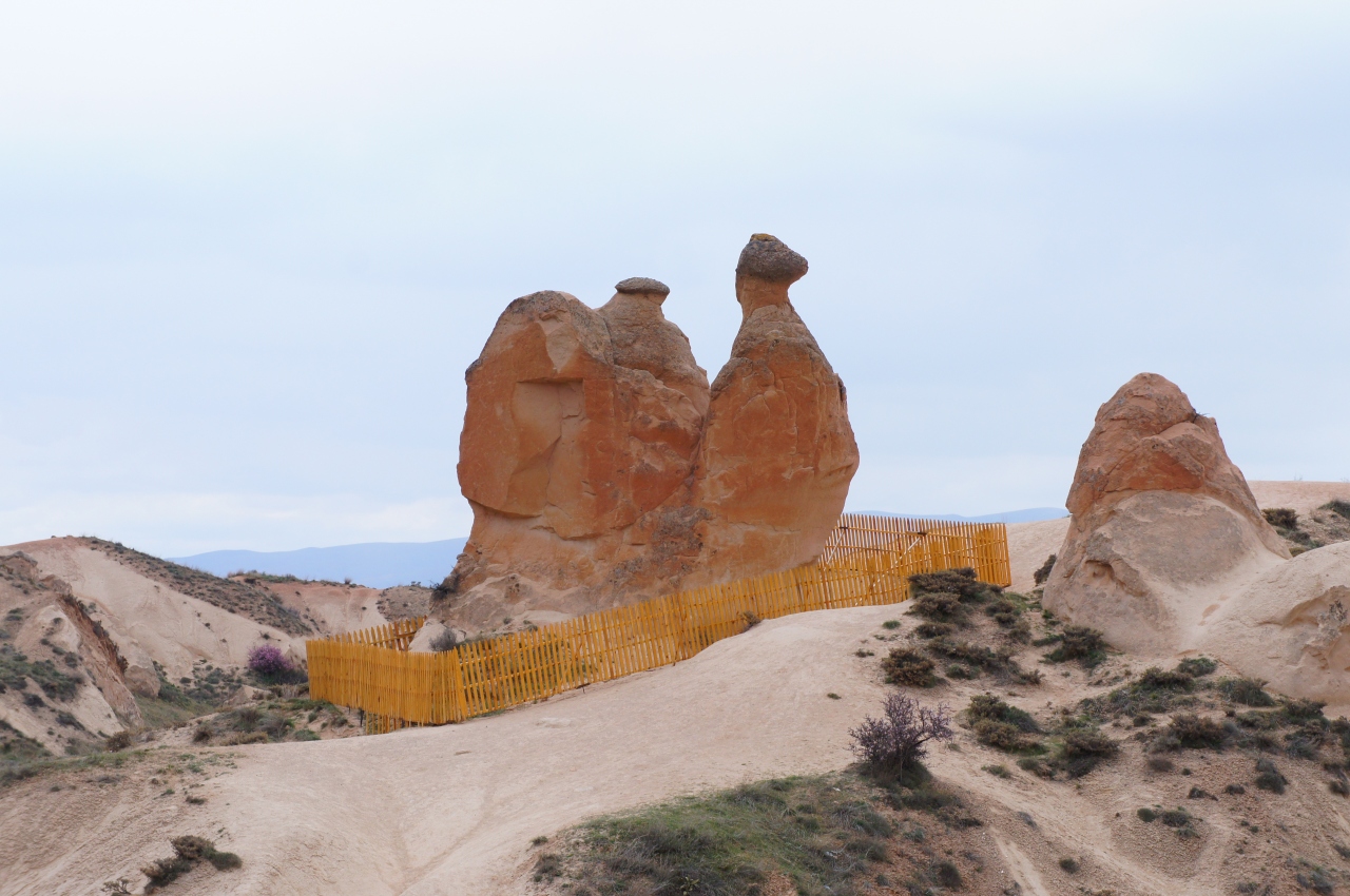 カッパドキアにある岩で、名前のとおりらくだの形をしていました。道路上からは少し離れた場所にこのラクダ岩が見える感じで、行こうと思えばラクダ岩の近くまで近づくこともできますが、岩の上を歩いていくことになるので歩きやすい靴が良いと思います。