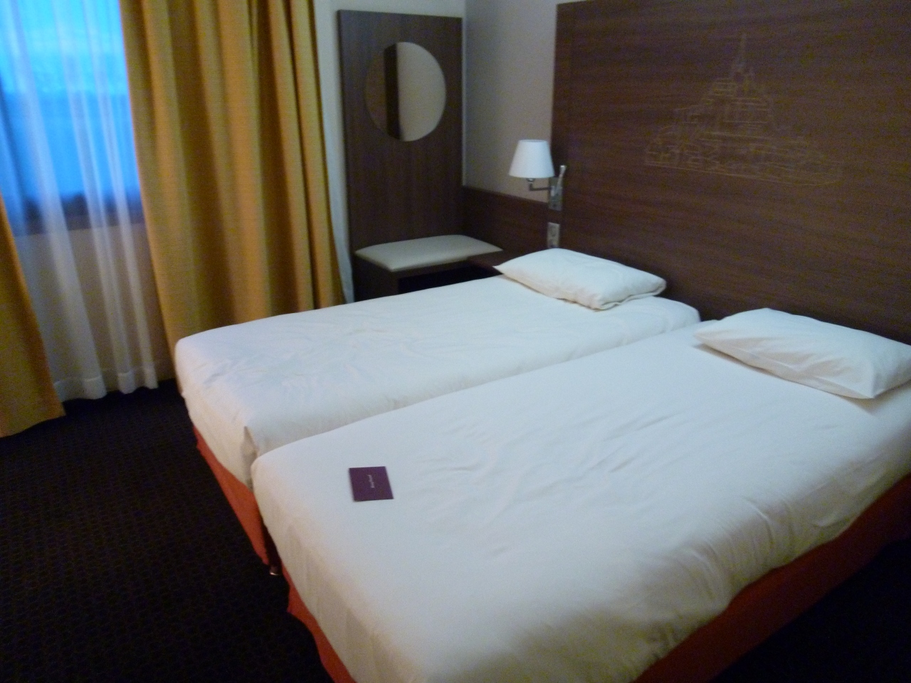 こちらのホテルはモンサンミッシェルの対岸にあるホテルで、島内のホテルではありません。ツアーで訪れましたが、島内ホテルよりもお安めでした。お部屋はそれほど広くはないですが、清潔で、日中は観光に出て寝るだけだったので十分でした。