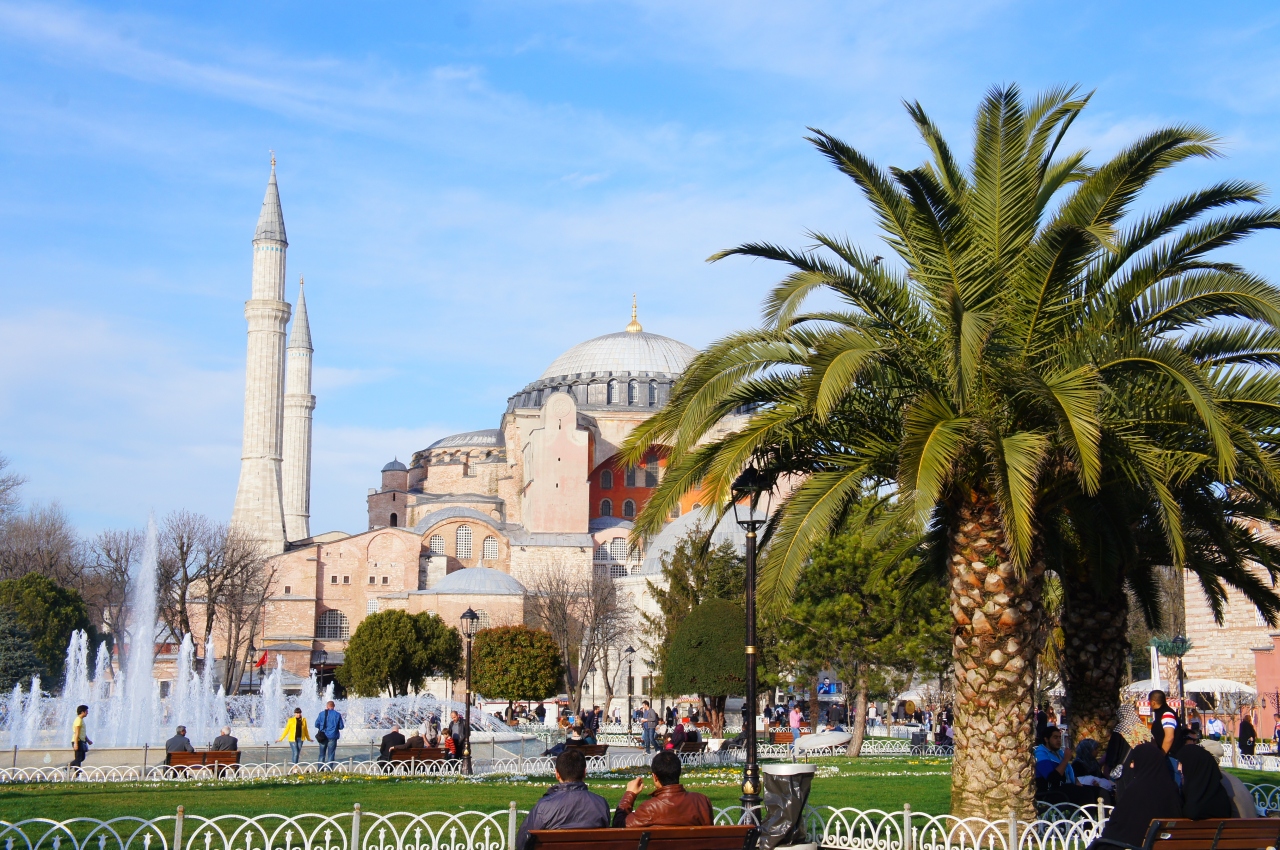 イスタンブールにある大きなモスクです。こちらのモスクは観光客でも礼拝時間に重ならなければ、内部の見学ができるということで多くの観光客が見学に来ていました。モスクの内部は天井が非常に高くて装飾も凝っていました。