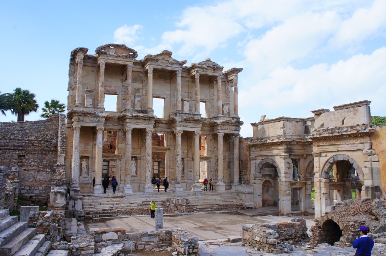 トルコにある古代ローマ帝国の都市遺跡であるエフェソス遺跡内にある通りの一つです。ガイド付きのツアーでこちらの遺跡を訪れましたが、順路的に一番最初に通過する通りでした。この通りの先には大劇場が広がっていました。