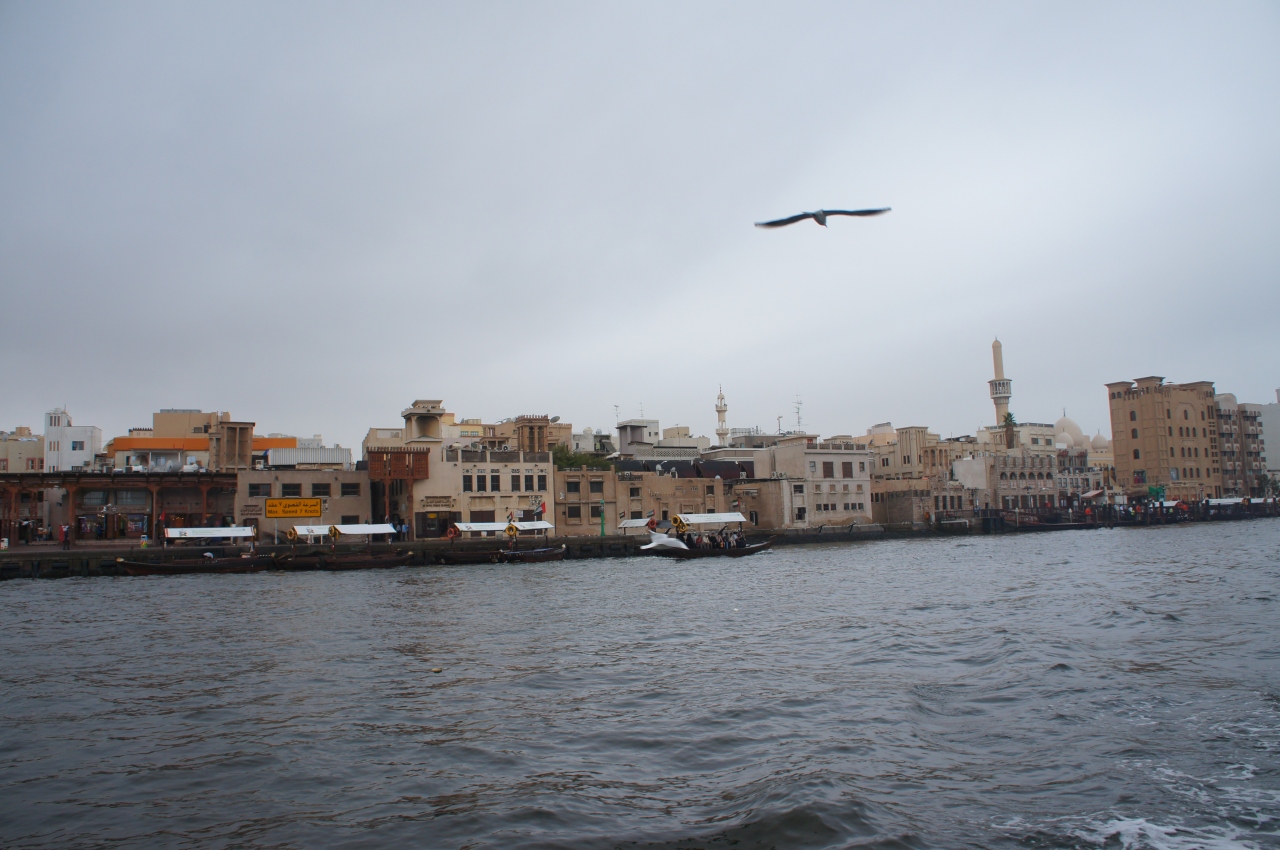 ドバイの中心部を流れている川です。この川を渡る交通手段としてアブラ水上タクシーが運行されていました。観光の途中で乗船しましたが、かなり簡易的なつくりの小舟で、地元の人たちも多く使っているような雰囲気で相乗りでした。