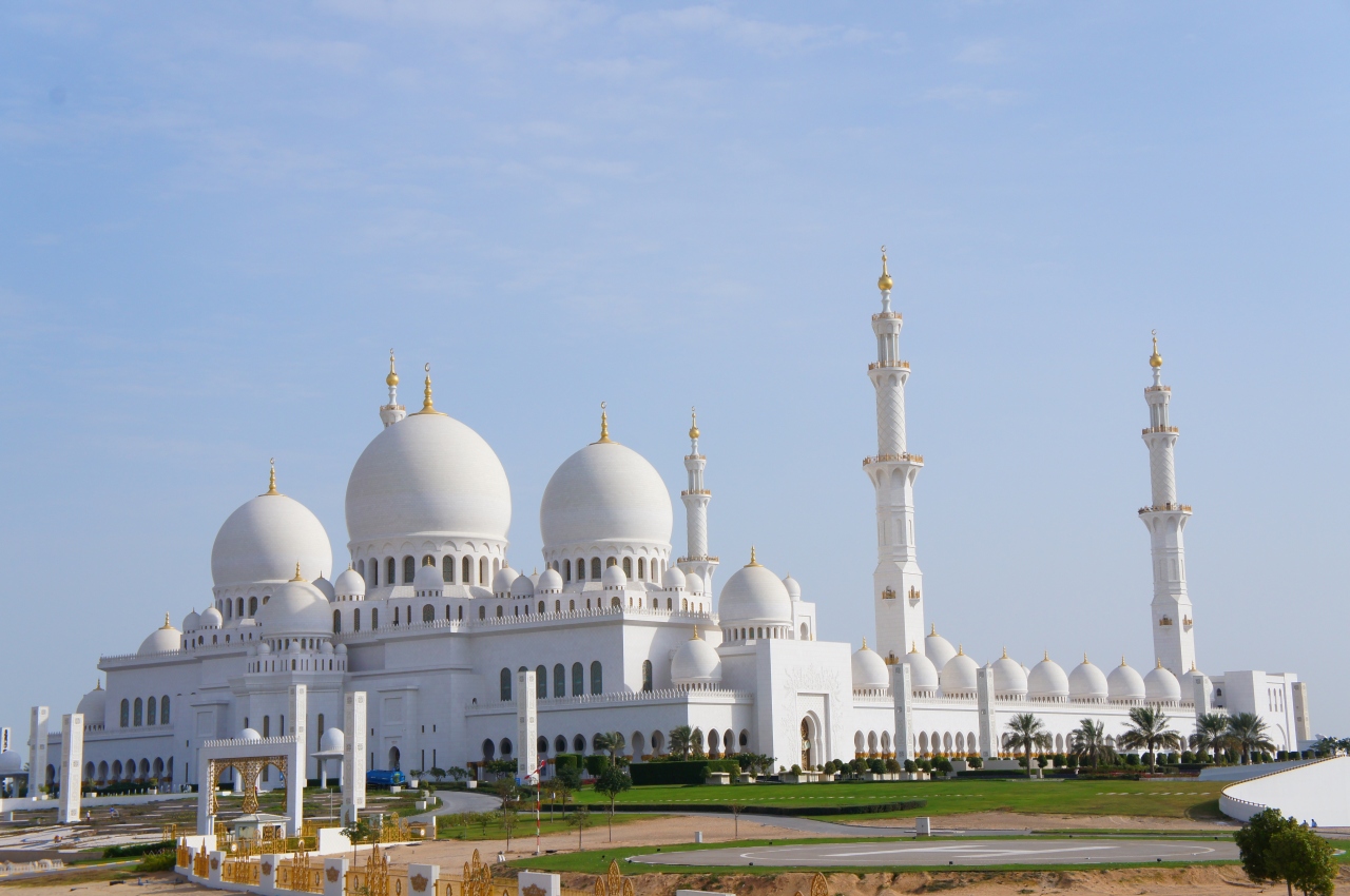 アブダビにある大きなモスクです。内部の見学ツアーなども開催されているようで、観光客でも内部の見学をできるモスクのようでしたが、ツアーで訪れたため、遠目からの外観見学のみで残念でした。白亜の美しいモスクでした。