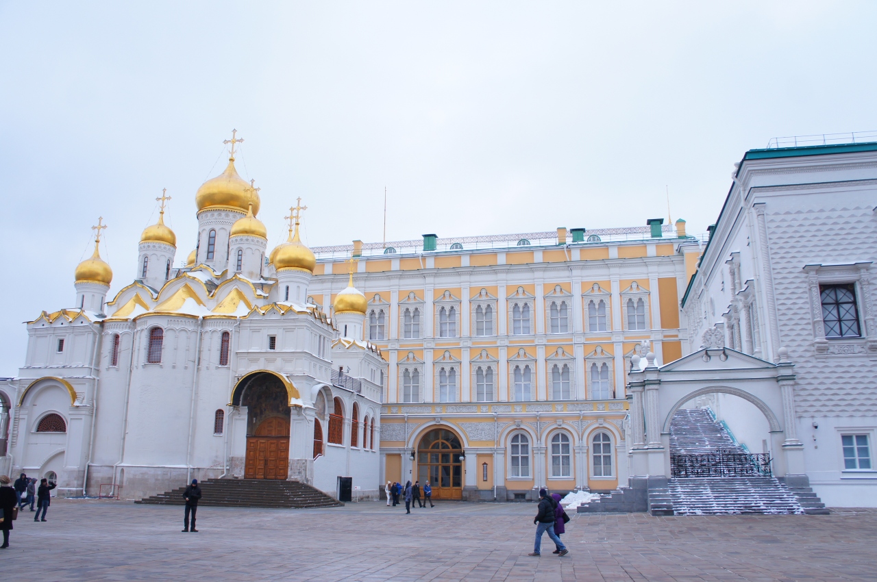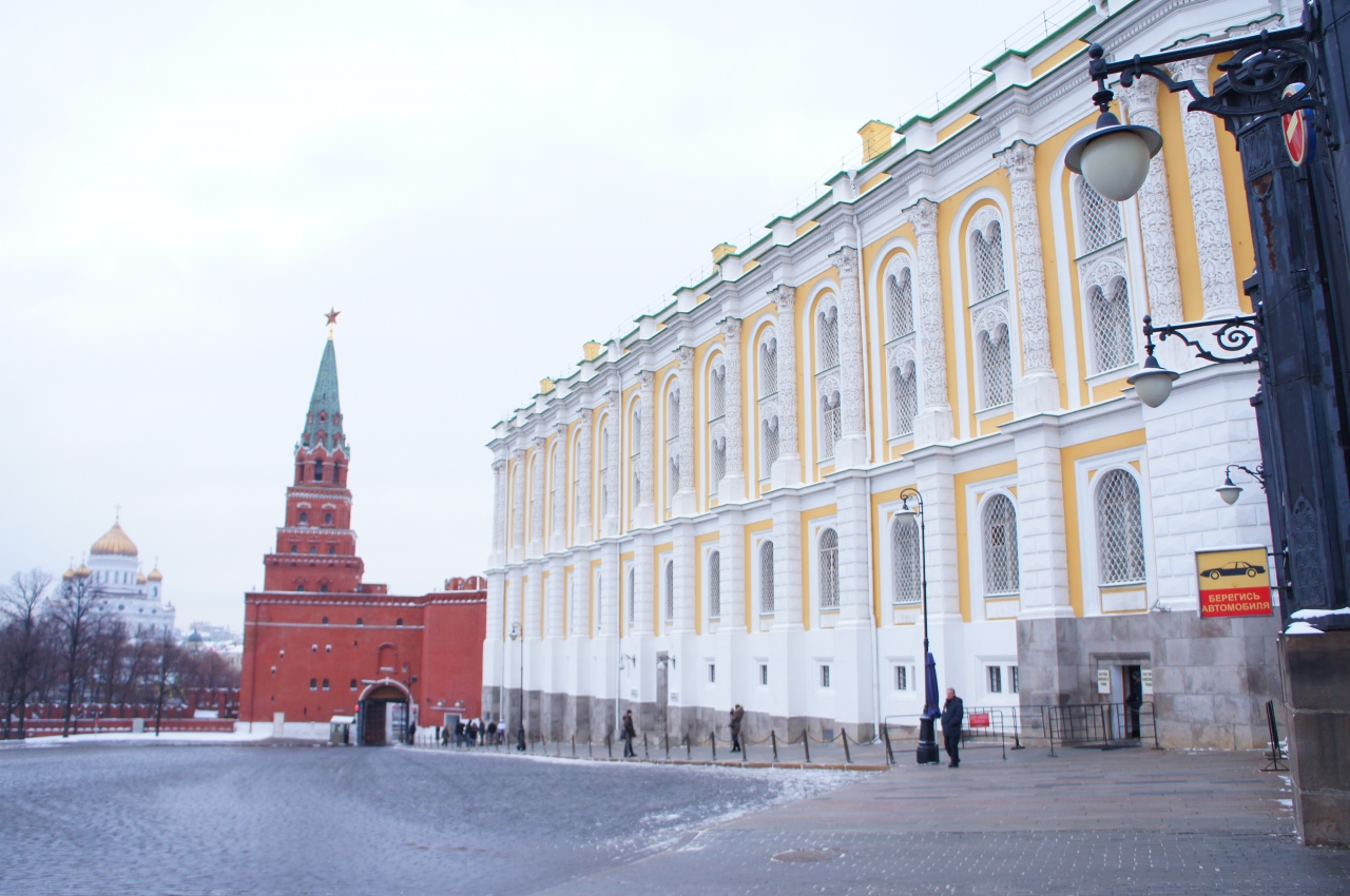 クレムリンの内部にある、サポールナヤ広場に面して建っている建物です。内部の見学はできないようで外観のみの見学でした。この広場にはウスペンスキー大聖堂等の金色の玉ねぎ型のドームが輝く教会等の建物が多いため、こちらの宮殿は地味に感じました。