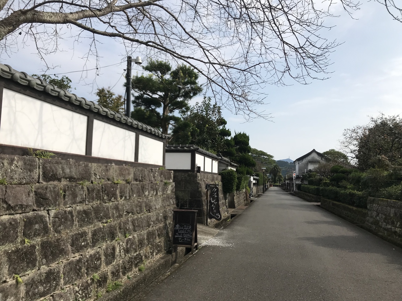 飫肥城跡の大手門の横を通っている昔の城下町の風景が保存されている通りです。通り沿いには、小村寿太郎の生家の他、お屋敷を利用した古民家レストランや、飫肥杉を使用した工芸品を扱っているショップなどが並んでいました。
