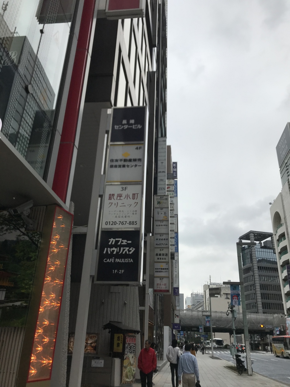 銀座のメイン通りである中央通り沿いにある建物で、銀座の中でもかなり新橋駅よりのほうにあります。1階にカフェが入っていて、こちらはとても落ち着いた雰囲気で、また朝8時台くらいからオープンしていてモーニングも楽しめるので重宝しています。