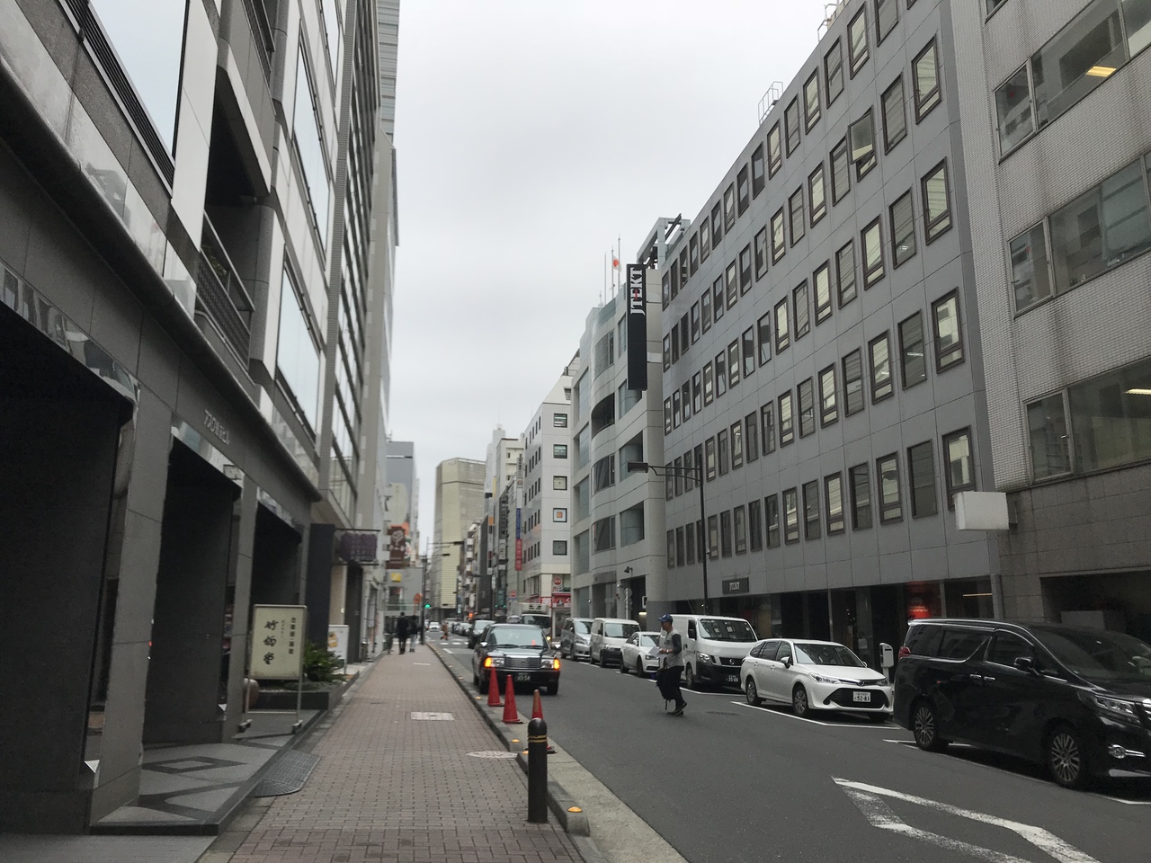 銀座の中央通りと並行してはしっている細い通りです。松屋銀座の裏のほうのエリアになります。この通り沿いにはこじんまりとした飲食店やお店などが並んでいて、メイン通りと比べるとだいぶ静かで人通りもそれほど多くありませんでした。