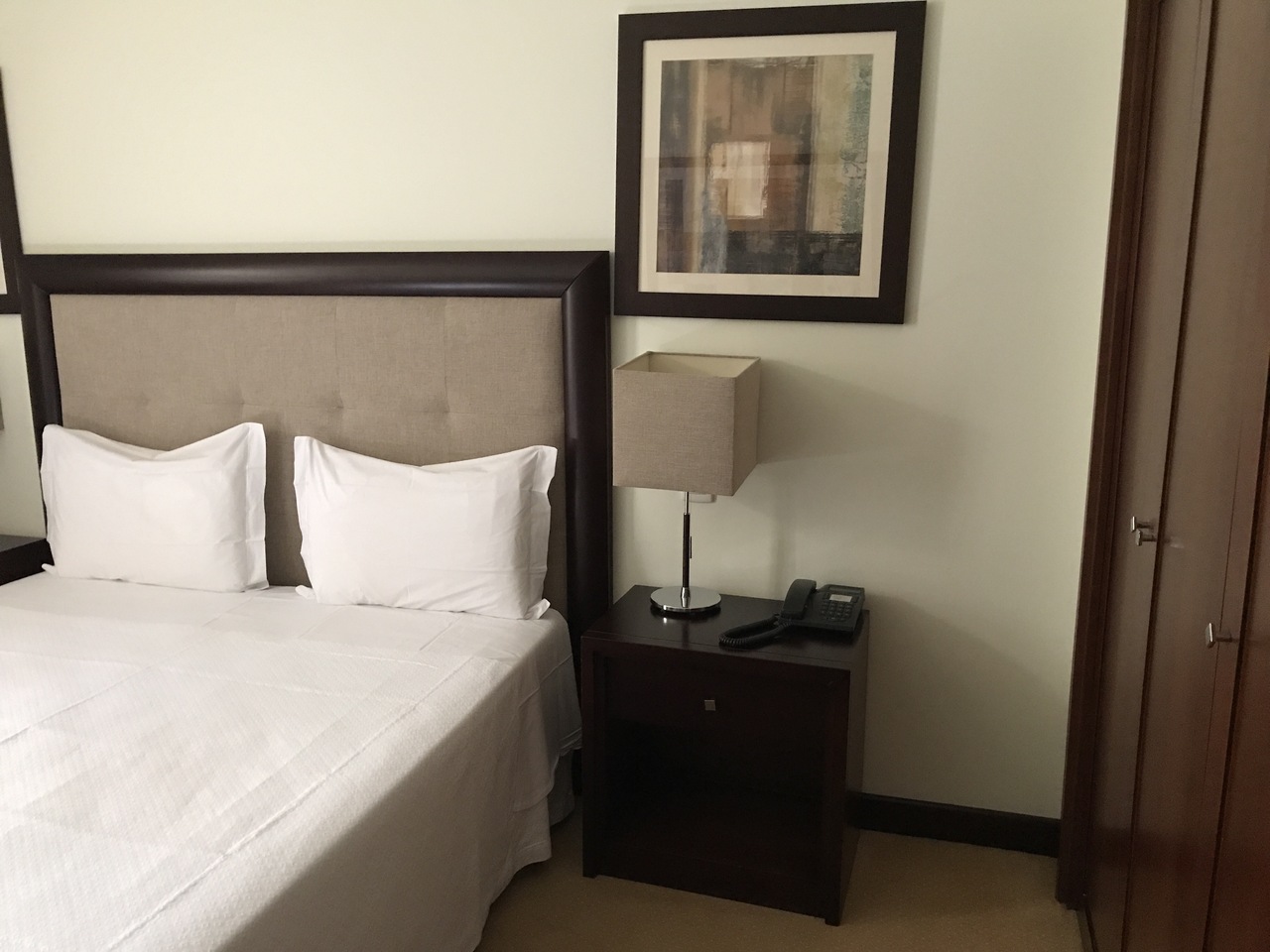 MRTのシティーホール駅と直結している超高層ホテルです。20階付近のマリーナベイ側の部屋に宿泊したので、とても眺めがよかったです。こちらのホテルの部屋はバルコニーがついていて外に出られたのもよかったです。マリーナベイの夜のショーもお部屋から観覧できました。
