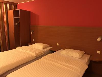 ミュンヘン中央駅から徒歩10分くらいでしたこのホテルがあるミュンヘン中央駅の南側はあまり治安が良くないと言われているようで、確かに風俗店のようなお店が多くあまり雰囲気は良くありませんでしたが、特に危険な思いをすることもありませんでした。ちなみにホテルの隣も風俗店のようなお店でした。ツインのお部屋でしたが、2人でスーツケースが十分広げられる広さで部屋も清潔でした。シャワーのお湯も十分でていました。