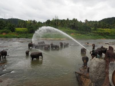 訪れた時間がちょうど午後の水浴びの時間であり、象の孤児院には少ししか象はおらず、ほとんどが近くの川で水浴びをしていました。川近くで見物していましたが、途中、象使いが蛇口から水を放出しており、観光客にも結構かかっていました。
