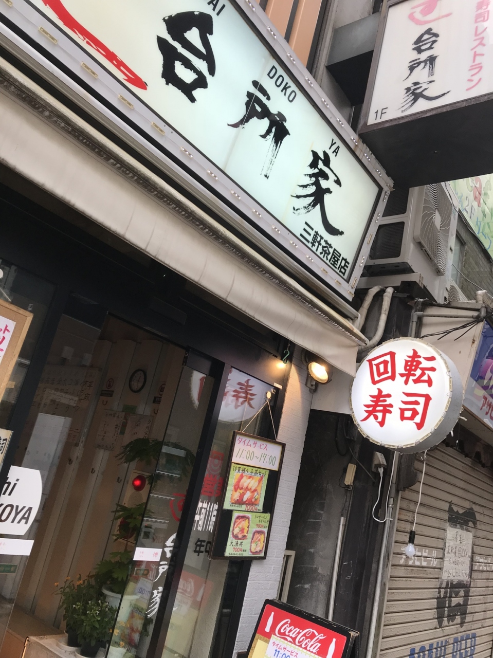 三軒茶屋駅から徒歩5分くらいの路地裏にある回転寿司屋さんです。テレビでとりあげられたこともあるようで、週末の昼の時間帯に訪れましたが、ほぼ満席でした。カウンター席のみで店内はそれほど広くはありません。一皿120~500円くらいとなっていて、お寿司の盛り合わせも注文できました。