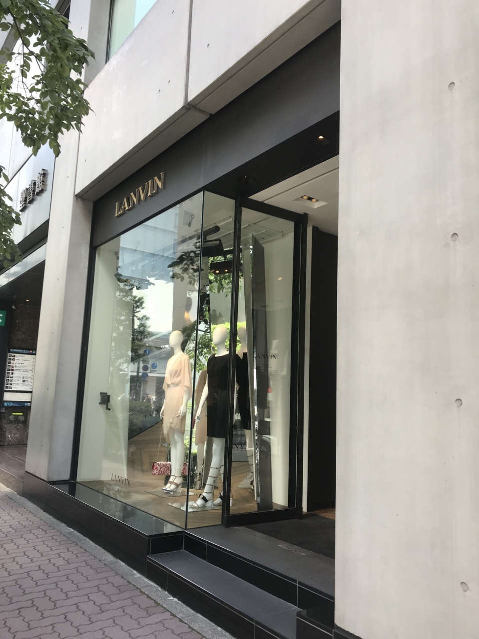 フランスのパリ発祥のブランドのショップです。銀座のメイン通りである中央通りから少し奥に入った松屋通り沿いにあるランバンの路面店です。こちらはランバンの全てのラインが揃っているショップなのだそうで、品ぞろえがよかったです。