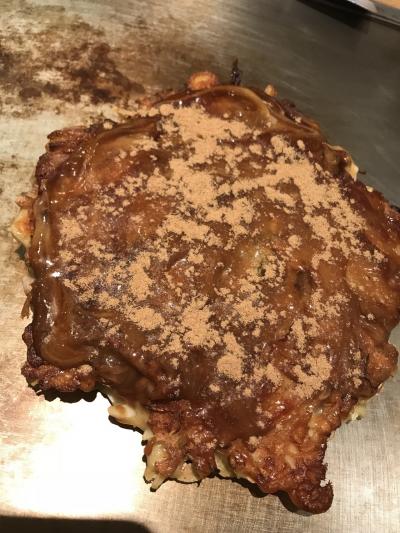 丸の内にあるTOKIAビルの地下1階にあるお店です。人気店のようで週末の18時頃に訪れた時には10組ほど並んで待っていました。お好み焼きはあらかじめ焼いてきてくれて、席の前の鉄板に置いて行ってくれるスタイルでした。結構1枚の大きさが大きくてボリュームたっぷりでした。