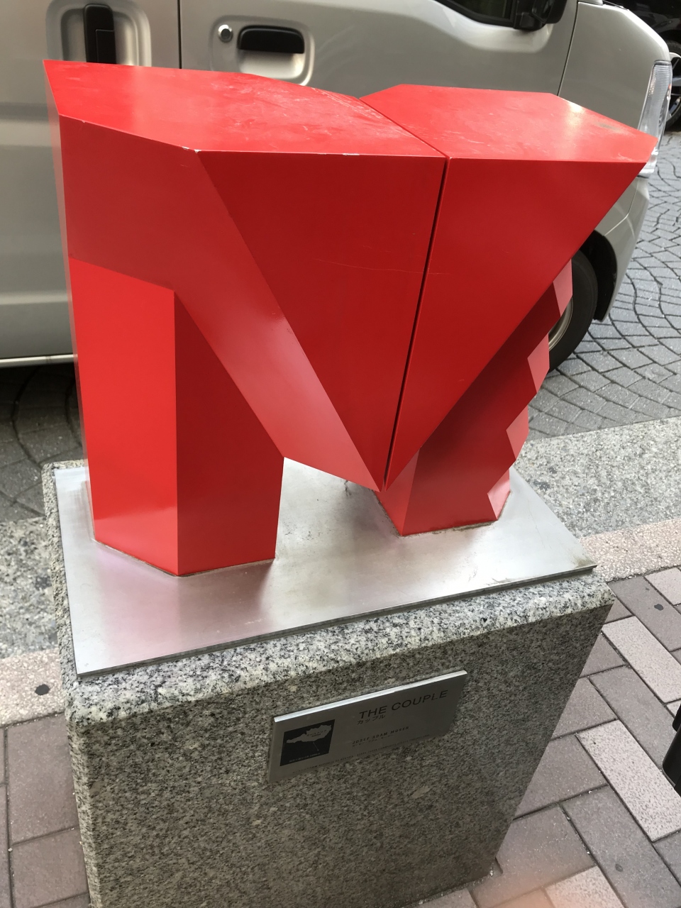 麻布十番商店街の通りの歩道の脇にあるモニュメントです。他のモニュメントはあまり色がないですが、こちらは赤色のモニュメントでした。このモニュメントはオーストリア大使館の協力を得てつくられたものなのだそうです。他にも同じようなモニュメントがいくつか点在していました。