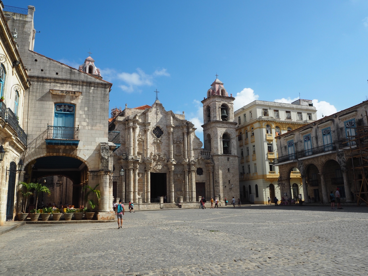 旧市街エリアにある大聖堂前の広場です。大聖堂はなかなか立派な造りで、この広場周辺はヨーロッパっぽいおしゃれな雰囲気でした。ガイドさんの説明を聞きながら旧市街散策をしている団体客のグループが多くいて、広場はにぎわっていました。