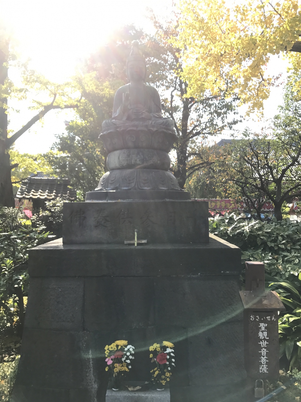 浅草寺の本堂から東側のエリア、東門の二天門から入るとすぐの場所にある浅草神社の境内にある石碑です。それほど目立った感じではなく、神社敷地内の端のほうの木々が植えられている植え込みの中にありました。華道のえらい人が亡くなられた際に弟子によってたてられたものだそうです。