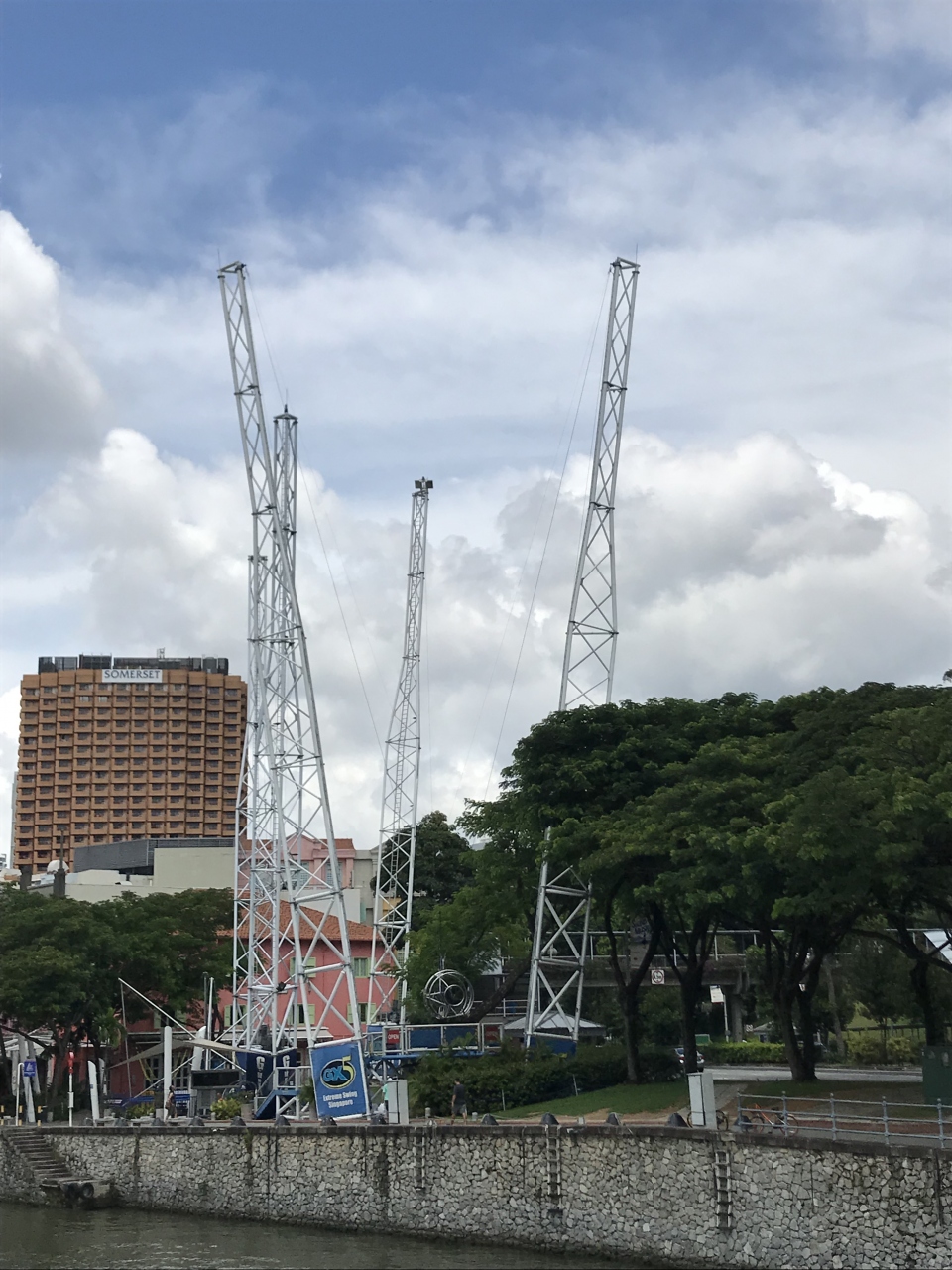 シンガポール川沿いのクラークキーエリアにある絶叫アトラクションです。このあたり一帯が遊園地となっているわけではなく、アトラクションが急にぽつんとある感じでした。訪れたのが午前中だったのでまだやっていませんでした。このあたりは夜になると活気づくエリアのようで夜は遅くまでやっているようでした。