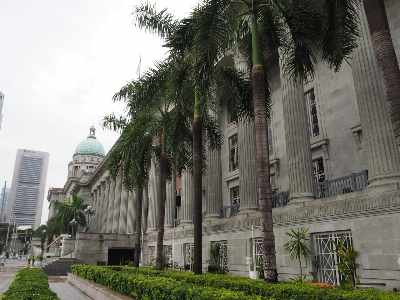 アジア文明博物館の隣にある立派な建物です。白い建物で、外観はヨーロッパに来ているような雰囲気でした。周囲は緑の芝生が手入れされていて、外観だけでも絵になる雰囲気でした。建物前には黒いラッフルズ卿の銅像が建っていました。