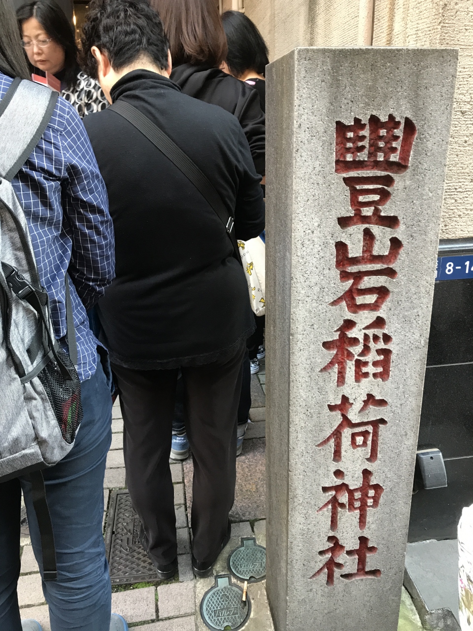 銀座八丁神社めぐりの対象神社になっていたので訪れました。建物と建物の間に細い参道があって、薄暗い参道を進んでいくと奥に神社がありました。表の通りからは見えない場所にありますが、豊岩稲荷神社と書かれた石柱が通り沿いにたっていました。また、銀座八丁神社めぐりの時間帯は目立つ赤い旗がたてられていたのですぐにわかりました。