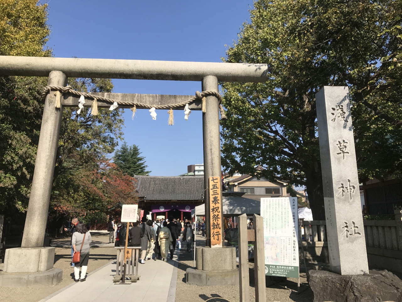 浅草寺の隣にある神社です。浅草寺の本殿でお参りしたあとに右の方へ進むとありました。浅草寺よりも混雑はしていませんでした。時期的に七五三のシーズンだったため着物をきた子供を連れた家族の姿を多く見かけました。